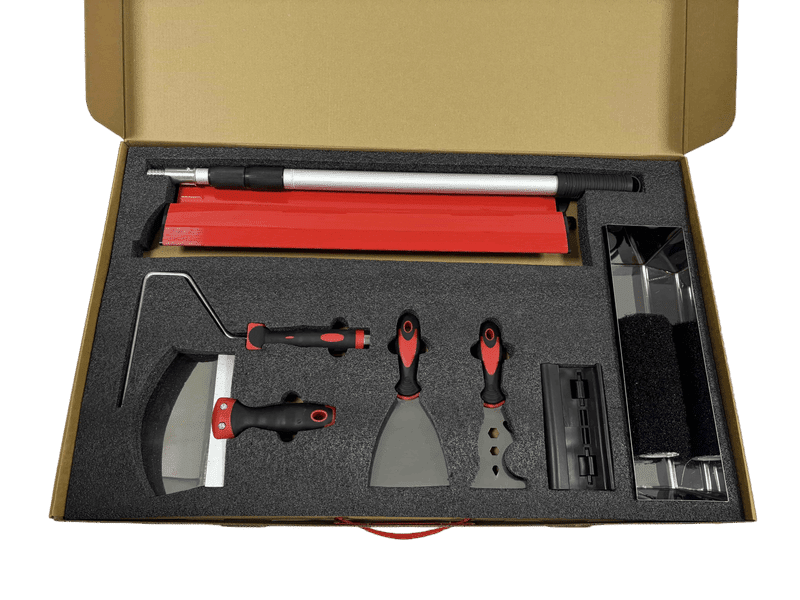 This all-in-one drywall skimming kit contains the most useful 60cm skimming blades, a 70–158cm adjustable telescoping pole, a 7" paint compound roller, a 12” mud pan, a 7" arc bucket scoop, a 4" putty knife, and a 3" multi-purpose taping knife. Designed for superior quality and performance, these blades allow smooth and precise application of joint compound, giving users professional, consistent finishing with every use.
