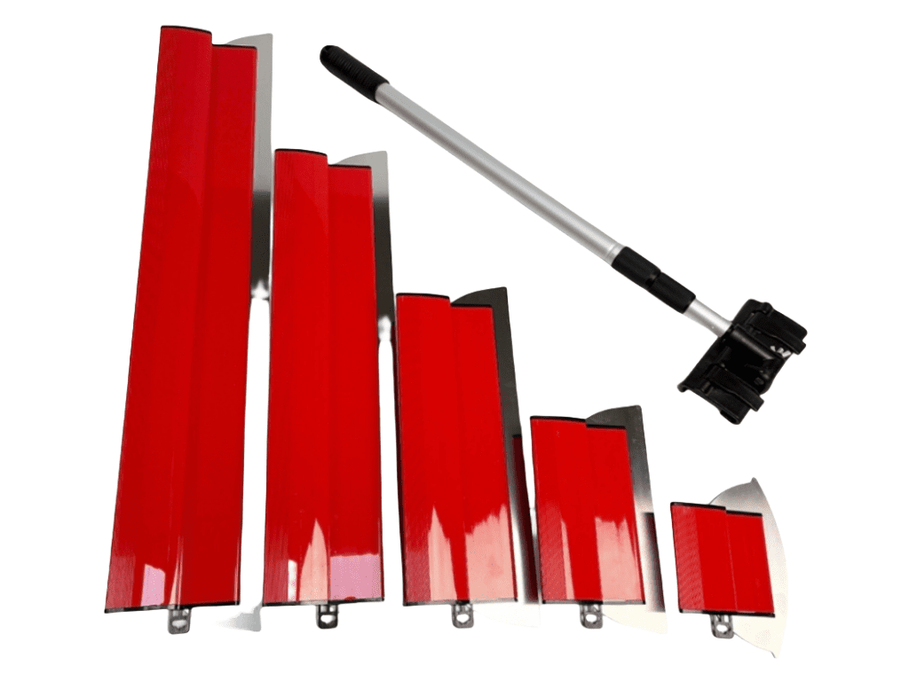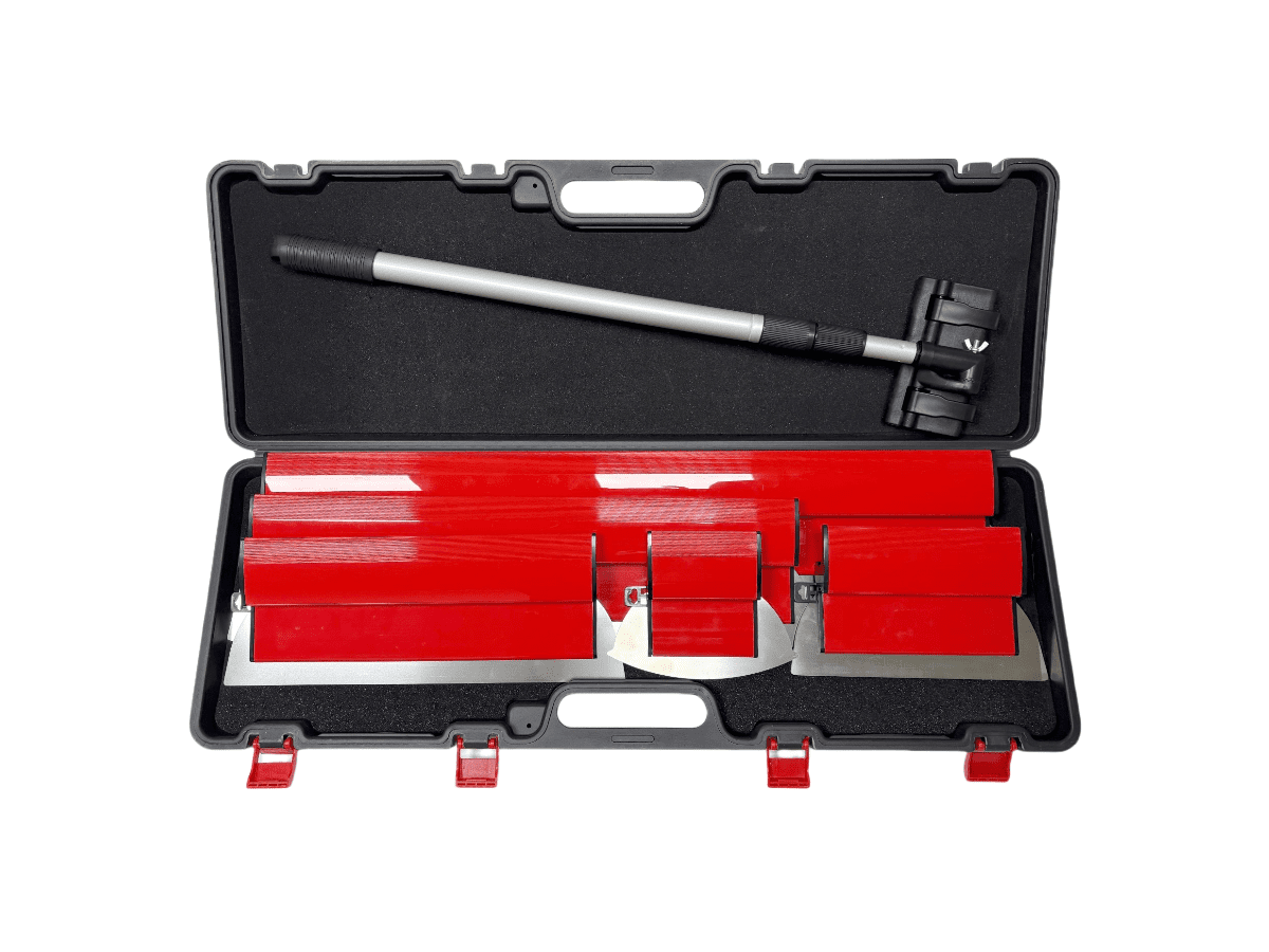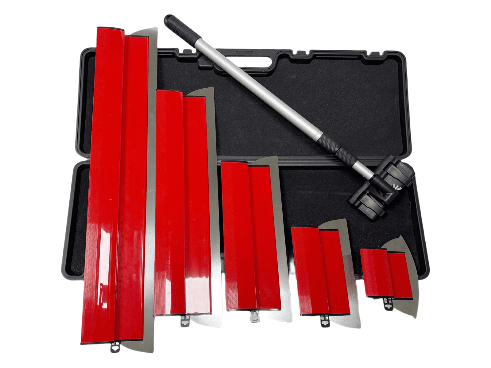 This comprehensive 11-piece kit features five precision blades (19cm to 80cm, 0.3mm) for flawless smoothing, four heavy-duty spare blades (0.5mm) for demanding jobs, an adjustable telescoping pole (70-158cm) for overhead work, a universal handle adaptor, and a durable composite carry case with protective padding. Designed for wholesalers and brand owners, this premium set offers exceptional value with its high-quality stainless steel construction, complete size range, and professional packaging – ensuring your customers get everything they need in one purchase. The versatile sizing appeals to contractors working on projects of all scales, while the robust spare blades provide extended tool life. With competitive bulk pricing and strong retail appeal, this set helps you attract more professional buyers and increase order values. Contact us today to discuss wholesale opportunities and special pricing for volume orders. Stock this complete finishing solution and give your customers the professional-grade tools they demand!